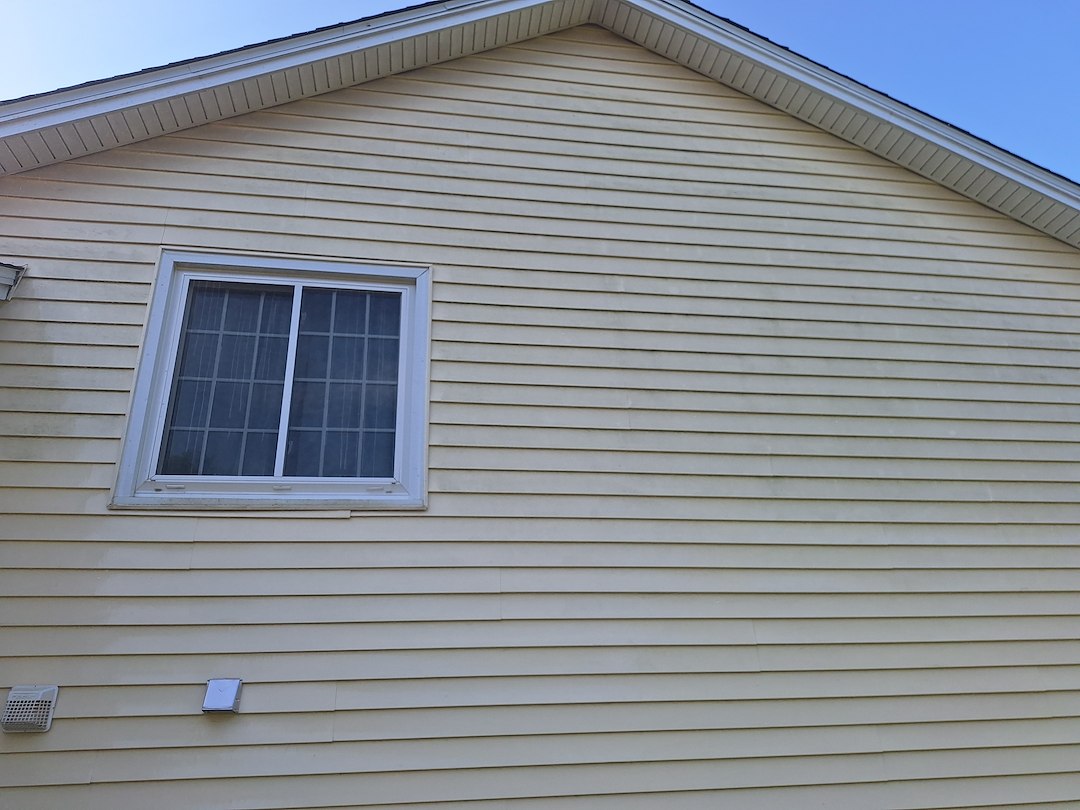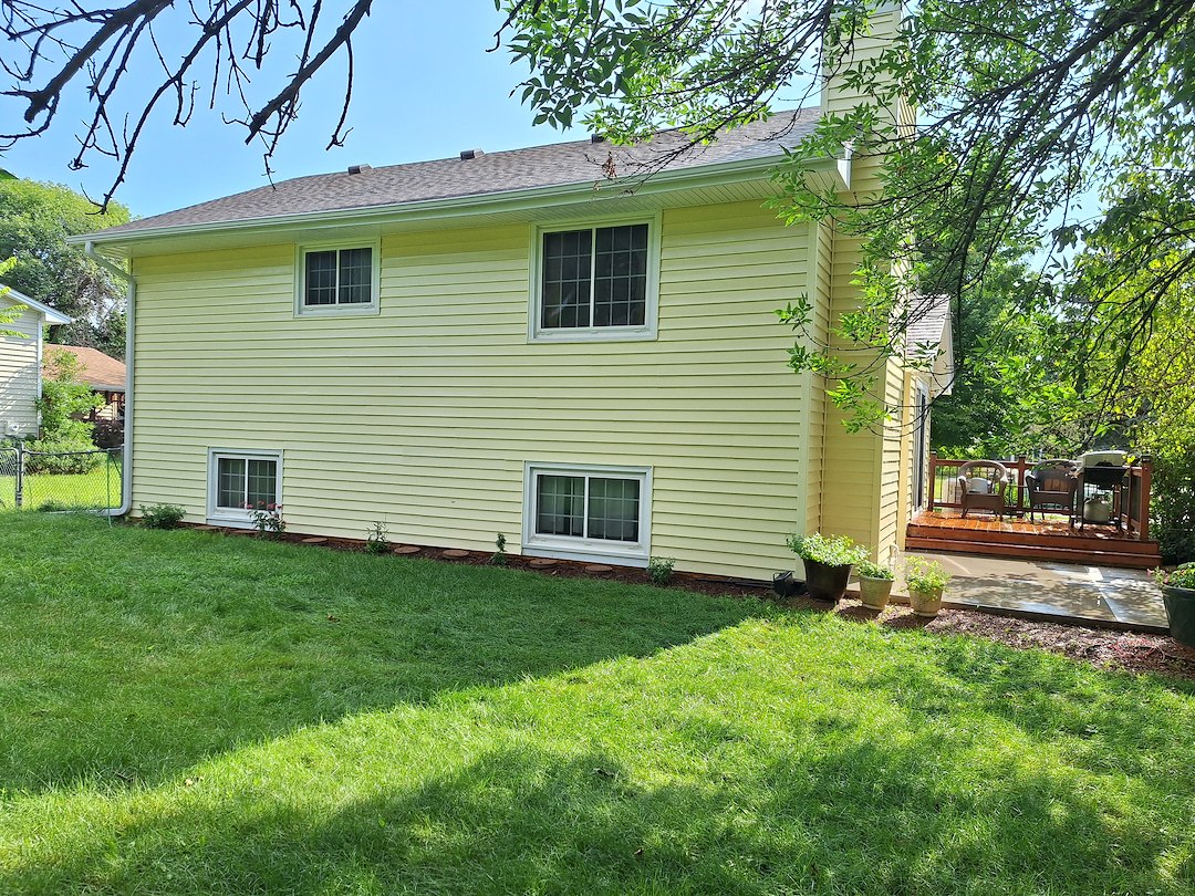 Today we had the opportunity to remove years worth of organic growth on this yellow home located in Champlin, MN. This particular customer found our website and gave us a call to discuss her concerns. Like most customers, their main concern was the green and black growth on the north side of their home. Our standard house washing process removes organic growth, dirt and debris from your home. Most customers find that we are an affordable solution to resolve their house washing needs.