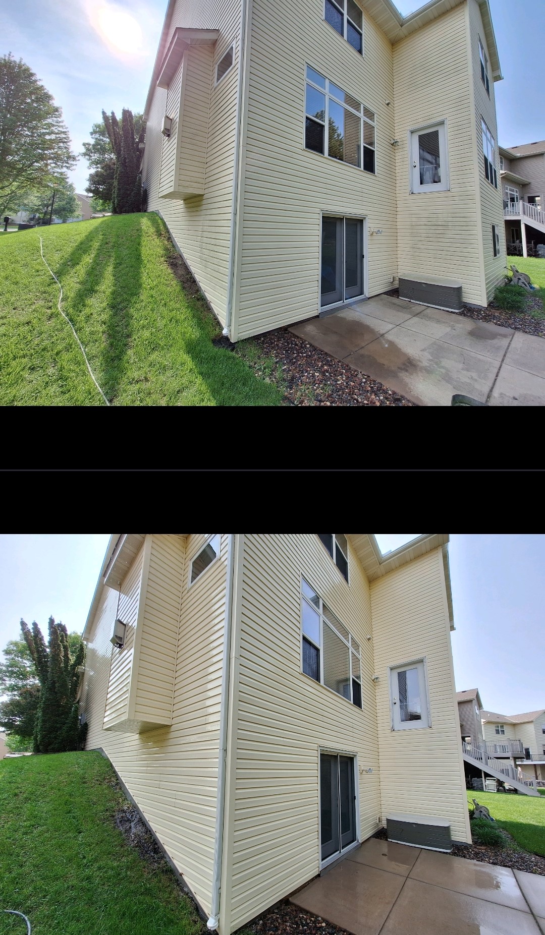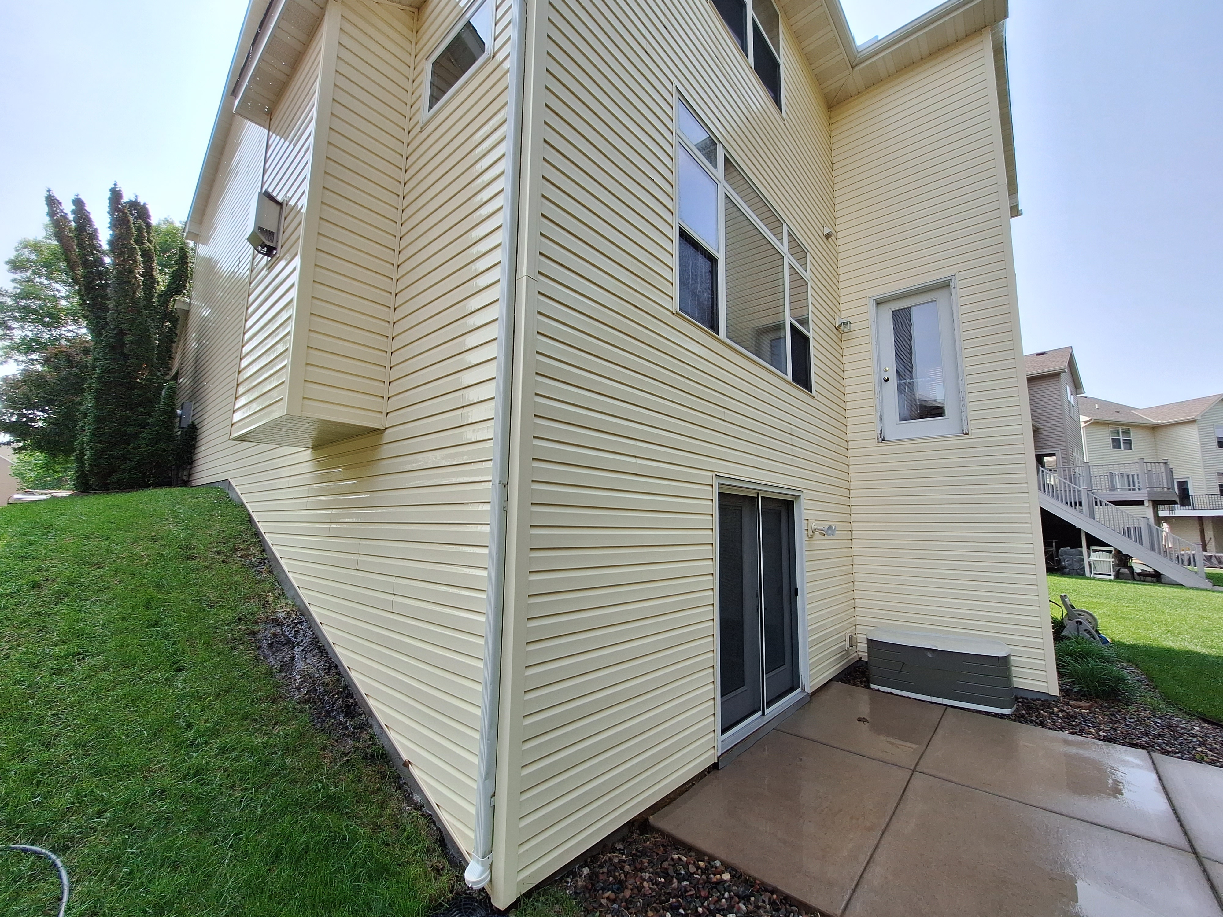 Dave's Precision Wash is in St. Michael, MN for this episode of my big dirty yellow house. This house wash was long overdue. We were able to safely remove approximately 13 years worth of organic growth. Loren was extremely shocked by the results. Especially because no ladder was needed to wash this home despite the heavy winds. We also pressure washed his patio during our visit. Give us a call today to discuss your pressure washing project.